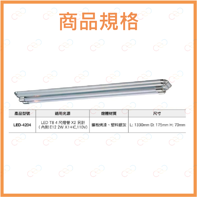 關鍵字:雙管IC日光燈具 4尺